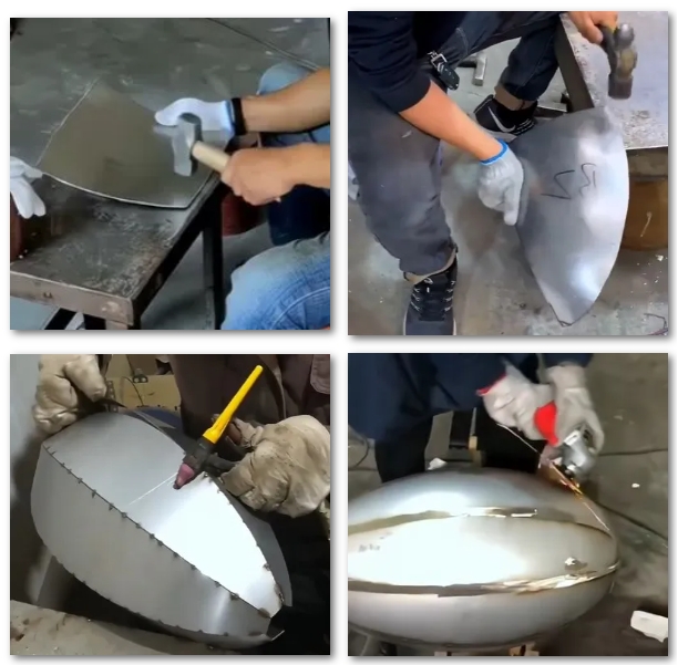 这种分段拼接的方式仅仅适用于装饰作用的异性几何体制作。而有一系列具备严格要求(一般是强度要求和密 封要求)的使用工况中是不允许采用这类常规钣金的方式来制造的(需要开模具来冲压成型)。