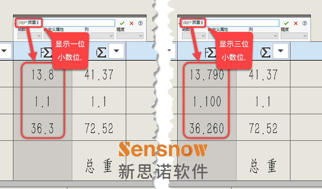 因为工程图的小数位要控制图纸总体小数位来使用,一个全局设定无法满足 BOM 表层面上的特定需求!