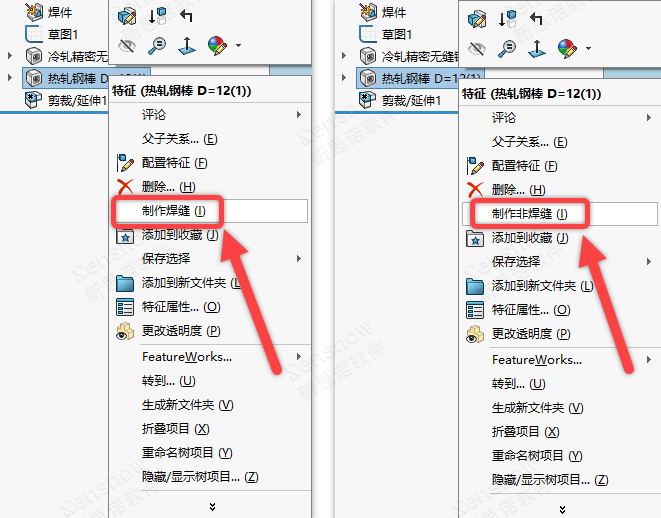【视频演示】焊接拓扑中的'制作焊缝'和'制作非焊缝'选项是什么含义?