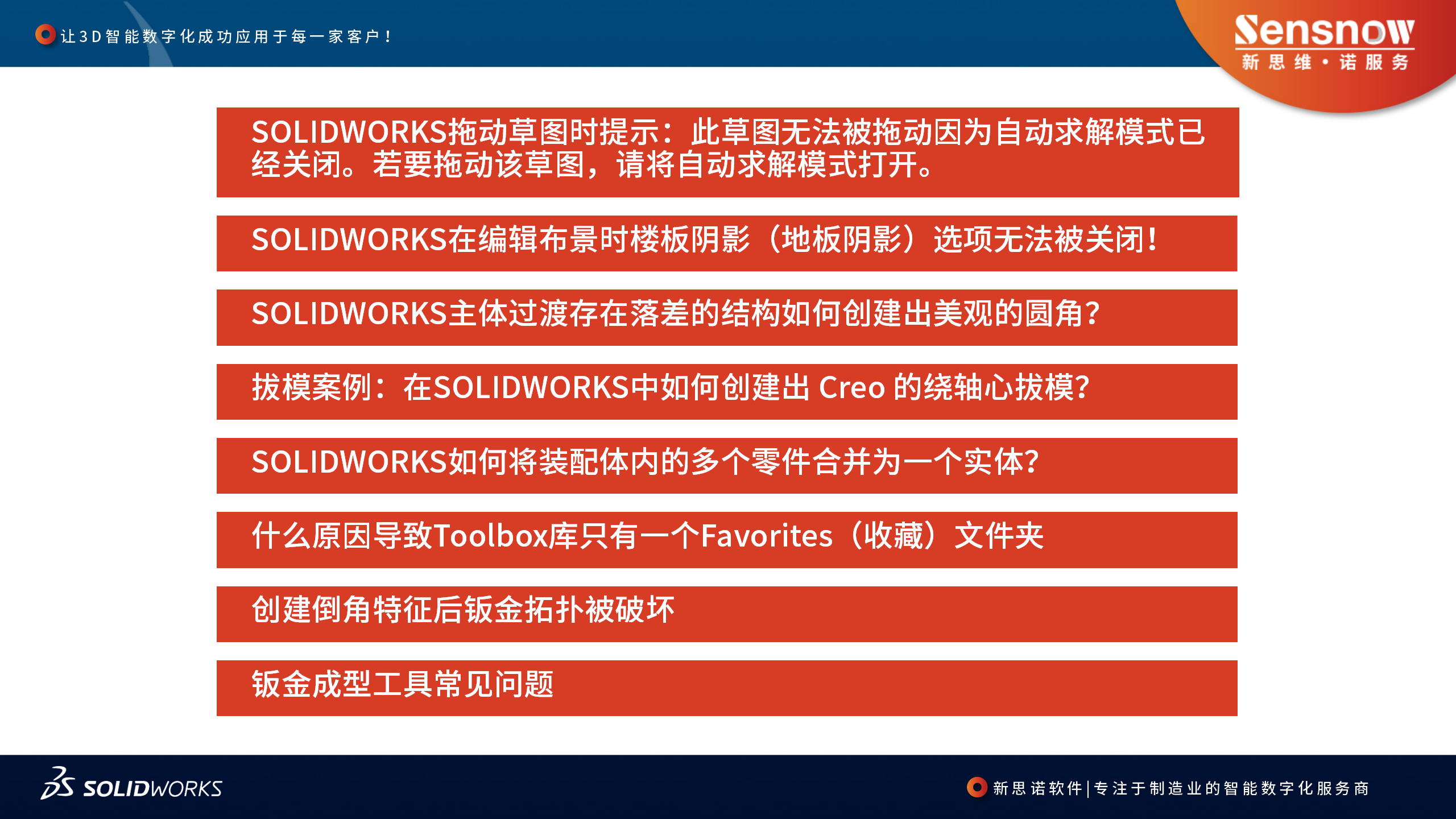 还在为SOLIDWORKS中那些令人抓狂的“小毛病”或“意料之外”的操作烦恼吗?第一期直播课广受好评(免费回放已上线),现在第二期免费培训升级来袭,JOE讲师再度出击!专治SOLIDWORKS操作中的“硬骨头”,带您突破技术盲区!