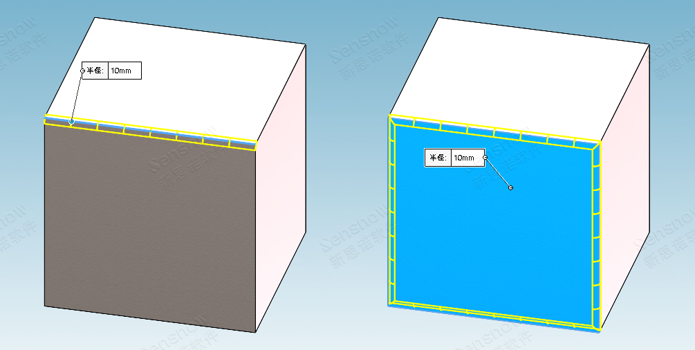 面就是点选模型面,是指选中一个或多个模型的面,对该面上所有的尖角处进行倒角;