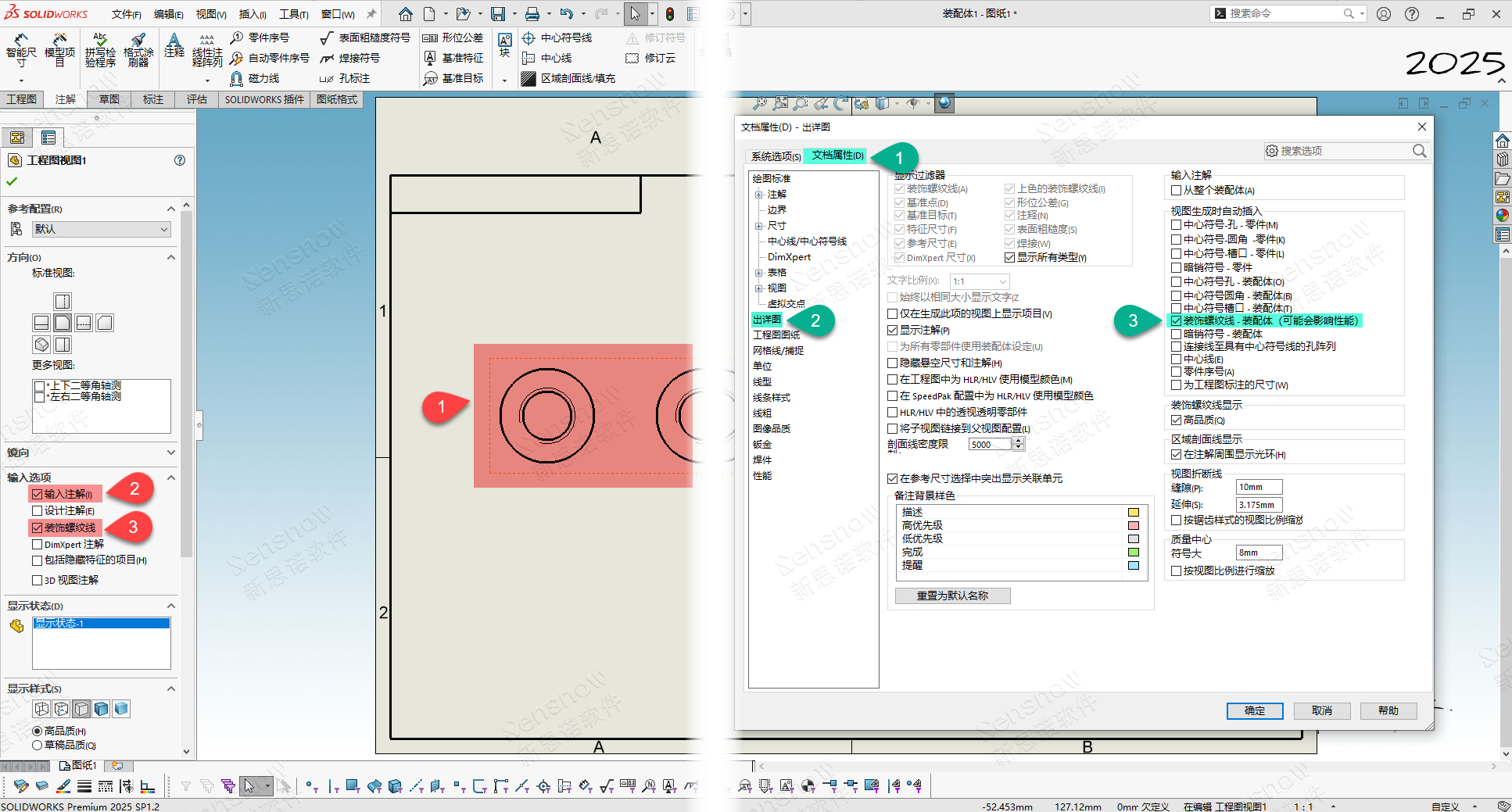 装配体工程图装饰螺纹线显示异常